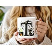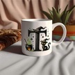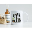 T Harfli Halloween Kedili Figür Kupa Bardak - Şapkalı Ve Kazanlı İsme Özel Kupa - Hediye Beyaz