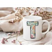 T Harfli Pastel Çiçek Desenli Kahve Kupası - Kişiye Özel Çiçekler Koleksiyonu Bardak - Hediye Beyaz