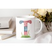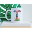 T Harfli Retro Çiçekli Kupa Bardak - Patchwork Tarz Yamalı Desenli İsme Özel Kupa - Hediye 07 Beyaz