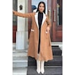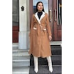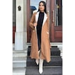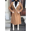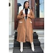 Taba Çift Taraflı Kruvaze Yaka, Kuşaklı, Yumoş Dokulu, Duble Kaşe Uzun Ceket Taba