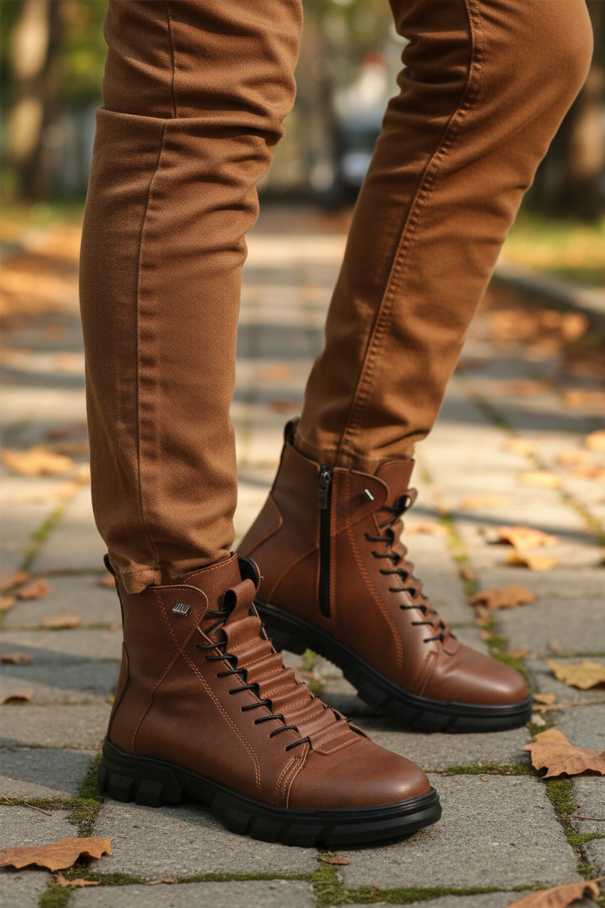 Taba İçi Polarlı Kaymaz Fermuarlı Erkek Bot 660 M Taba