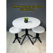 Tabure Beyaz Deri Puf Makyaj Masası Sandalyesi Metal Sandalye