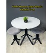 Tabure Gri Puffy Bukle Kumaş Puf Makyaj Masası Sandalyesi Metal