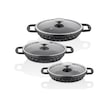 Taç Bella Cam Kapaklı 3 Lü Döküm Sahan Seti Siyah