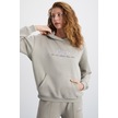 Taına Kadın Nakış Detaylı Organik Pamuk Şehir Temalı Regular Kapüşonlu Bej Sweatshirt