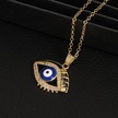 Takı: Titanyum Çelik Köprücük Kimi Zinciri, Renkli Zirkon Taşlı Göz Pandantif, Şeytan Gözü Kolye Beyaz - Mavi