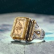 Takılingo 925 Ayar Gümüş Kehribar Taş Üzeri Elhamdülillah Yazılı Erkek Yüzük Gümüş