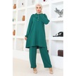 Tesettür İkili Takım Uzun Tunik Bol Paça Pantolon 4006-bej Bej