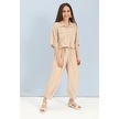 Takım Nakış Detaylı Viskon Gömlek Pantolon - Bej-bej Bej