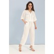 Takım Nakış Detaylı Viskon Gömlek Pantolon - Ekru-ekru Ekru