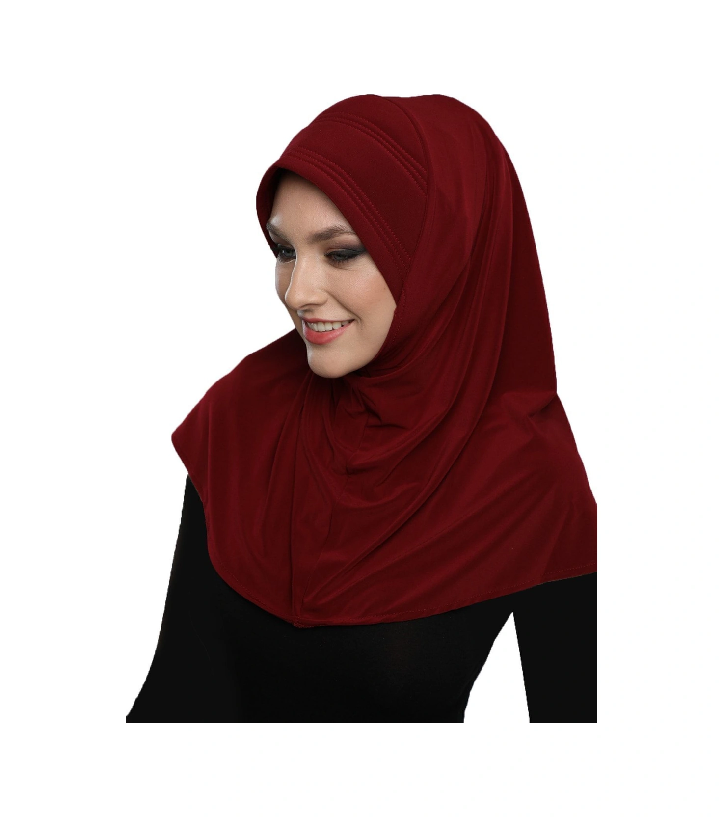 Takmatik Sade Bordo Hazır Türban Tesettür Havuz Bonesi Namaz Örtüsü Bordo