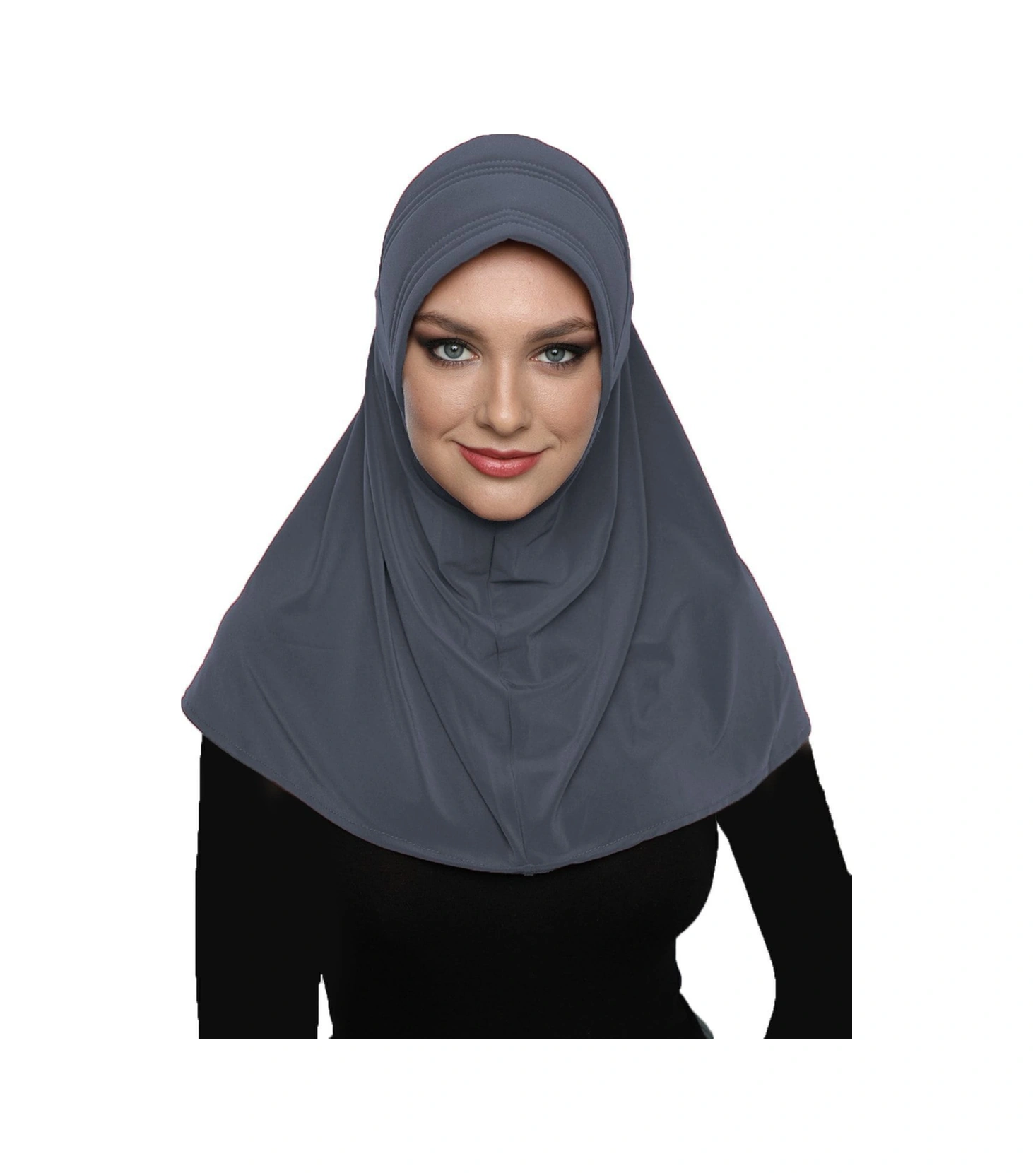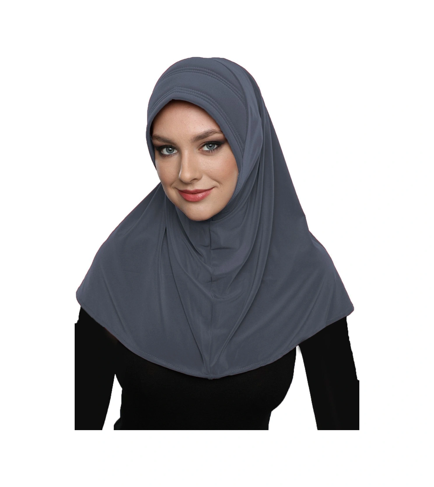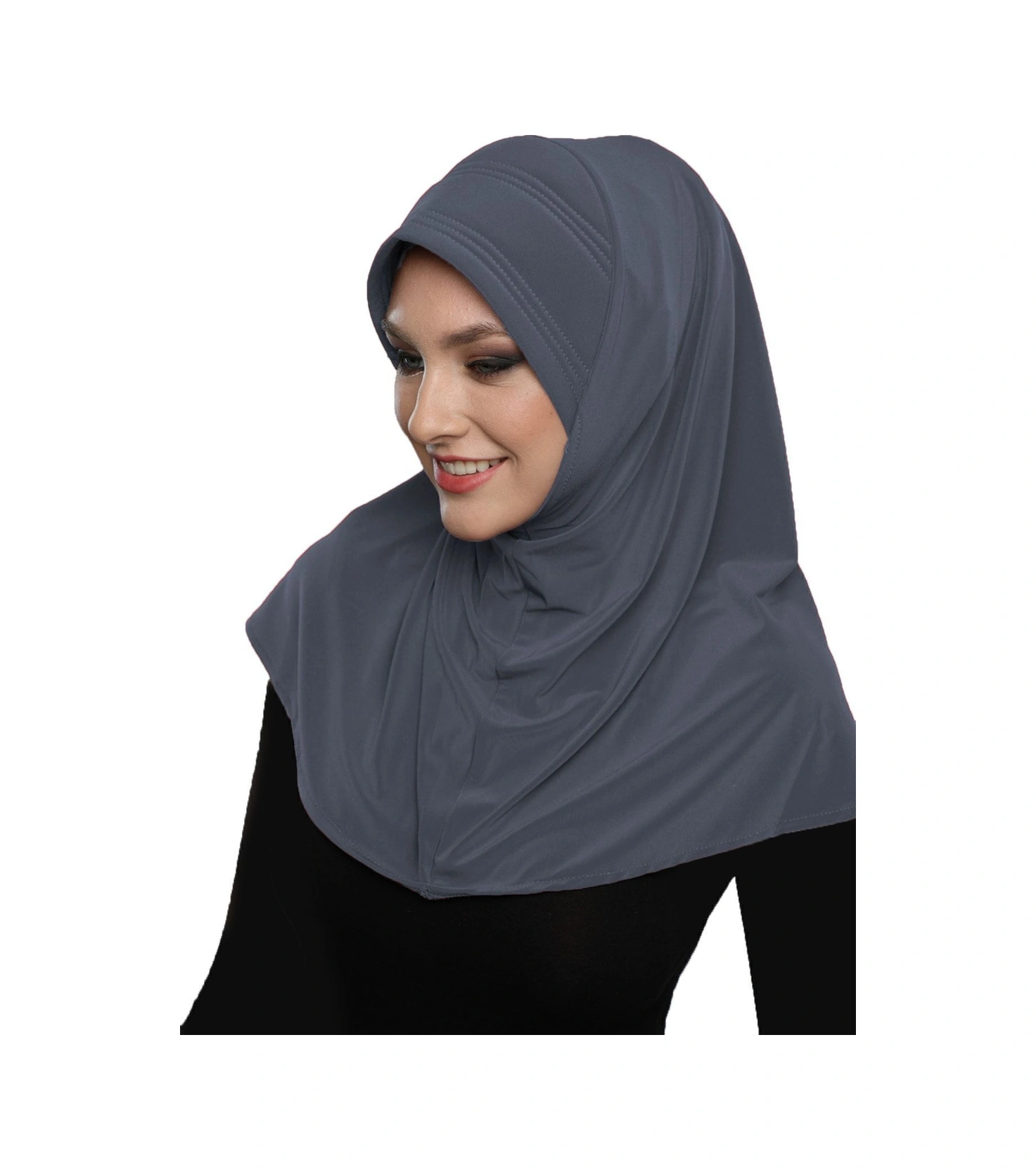 Takmatik Sade Koyu Gri Hazır Türban Tesettür Havuz Bonesi Namaz Örtüsü Koyu Gri