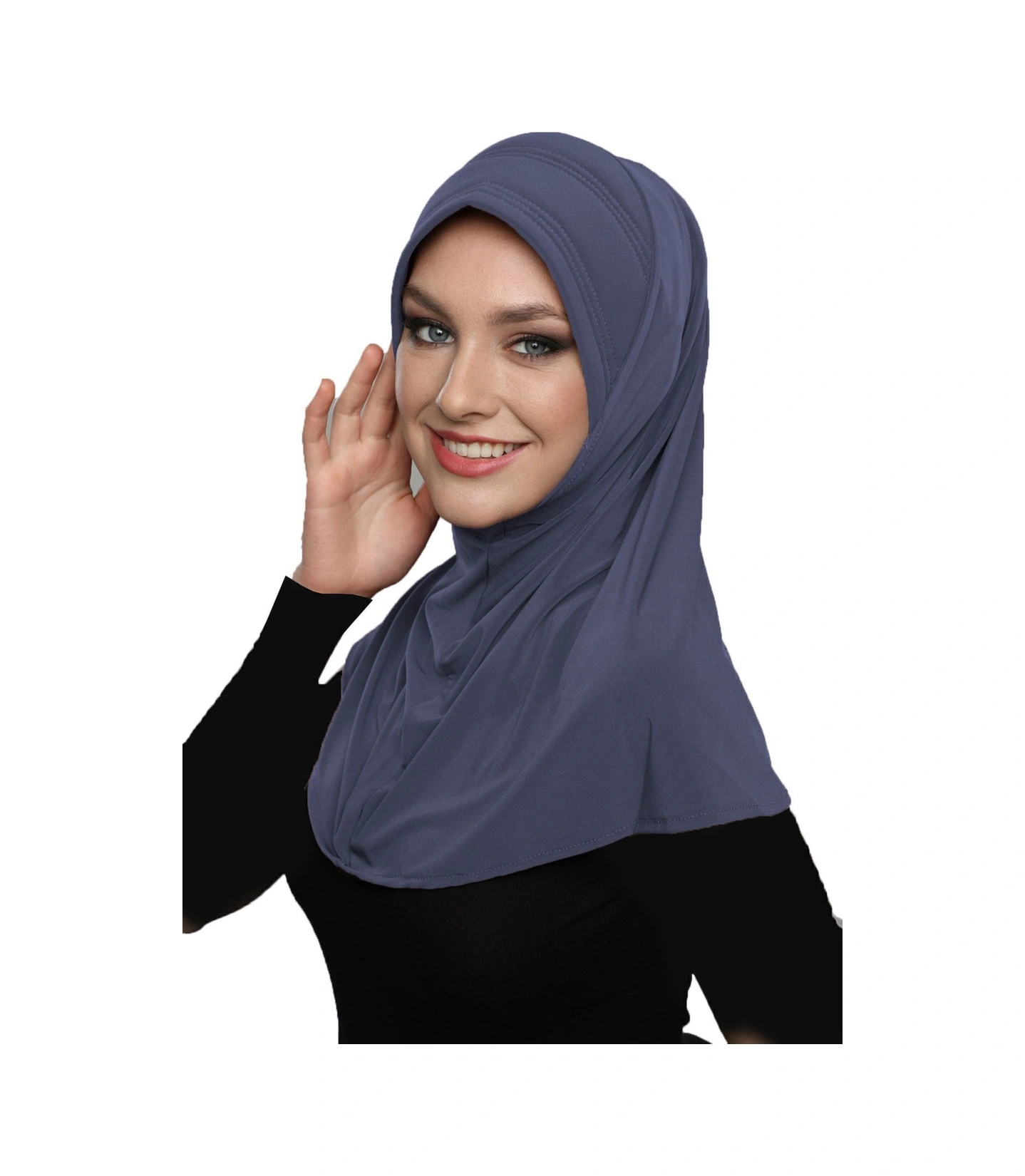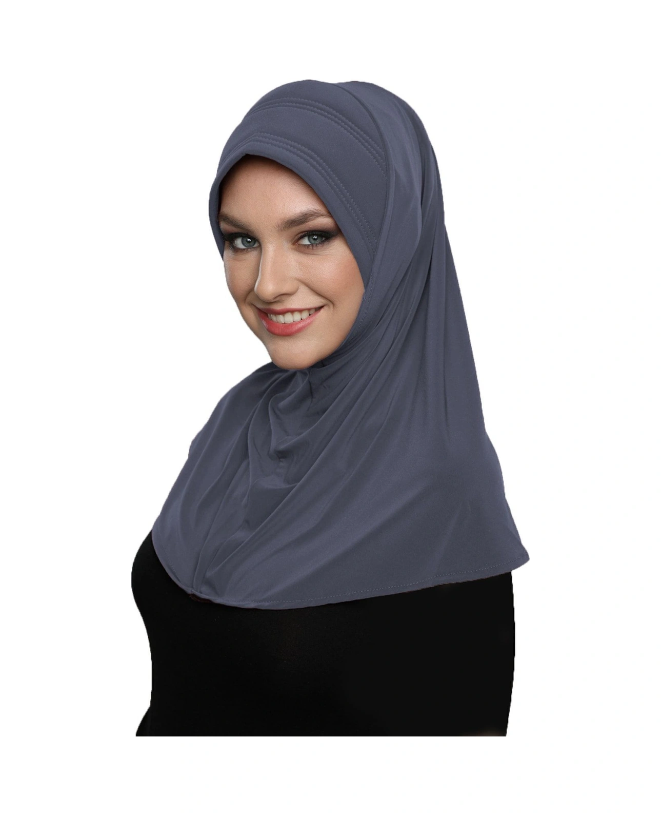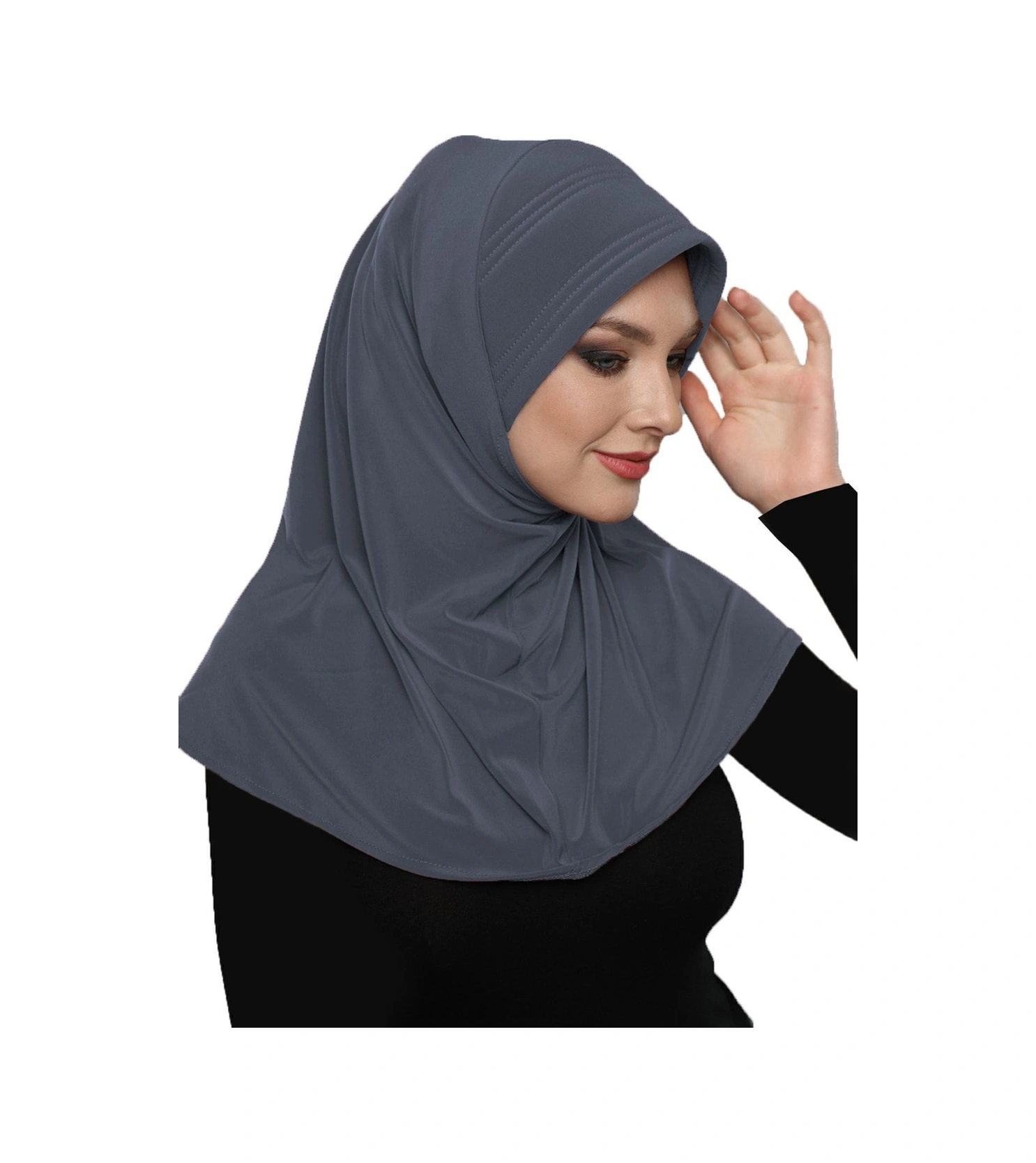 Takmatik Sade Koyu Gri Hazır Türban Tesettür Havuz Bonesi Namaz Örtüsü Koyu Gri