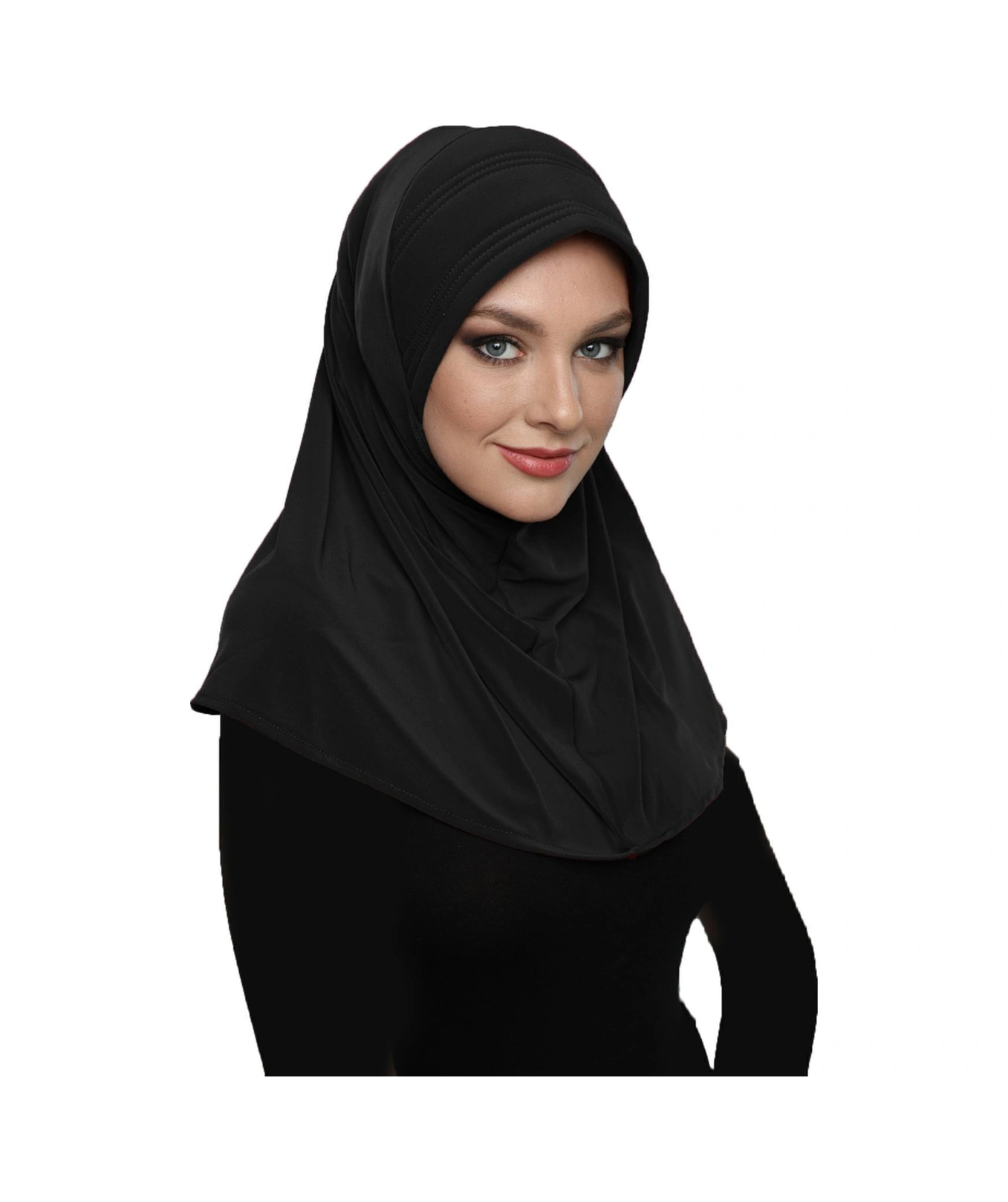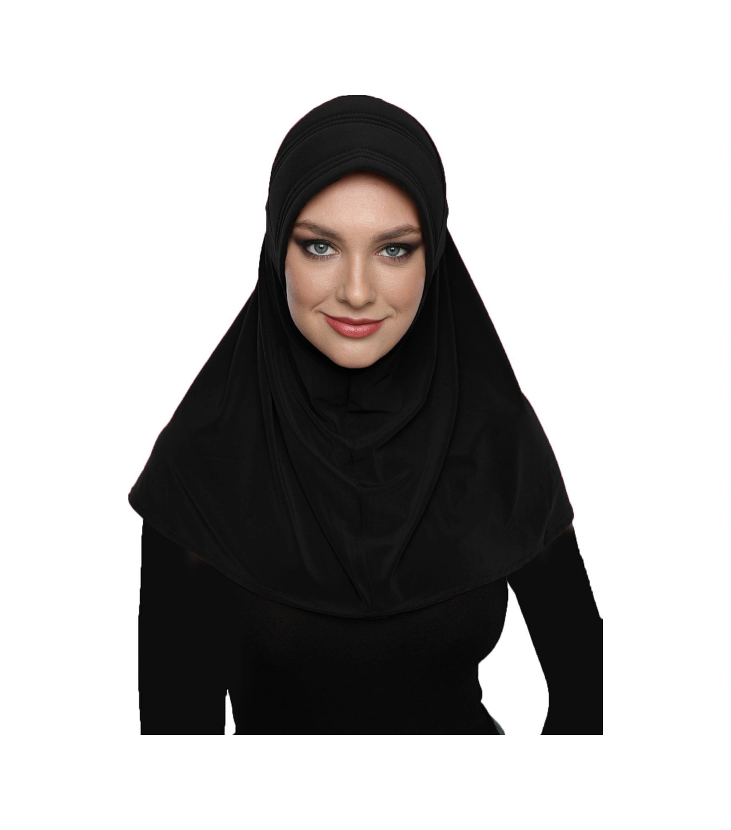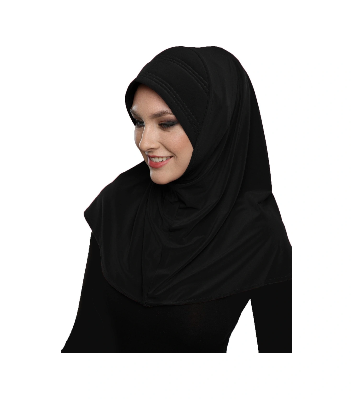 Takmatik Sade Siyah Hazır Türban Tesettür Havuz Bonesi Namaz Örtüsü Siyah