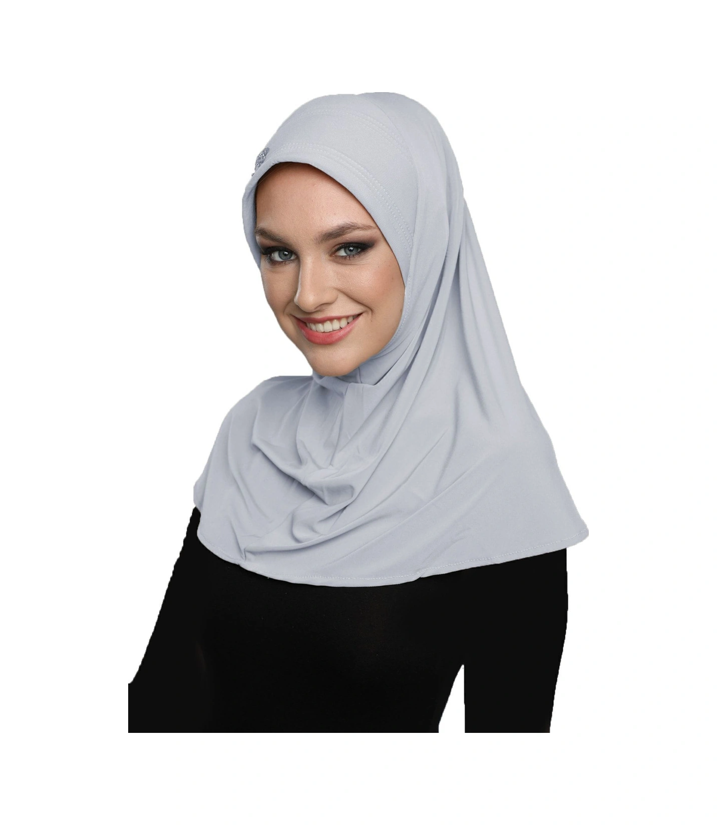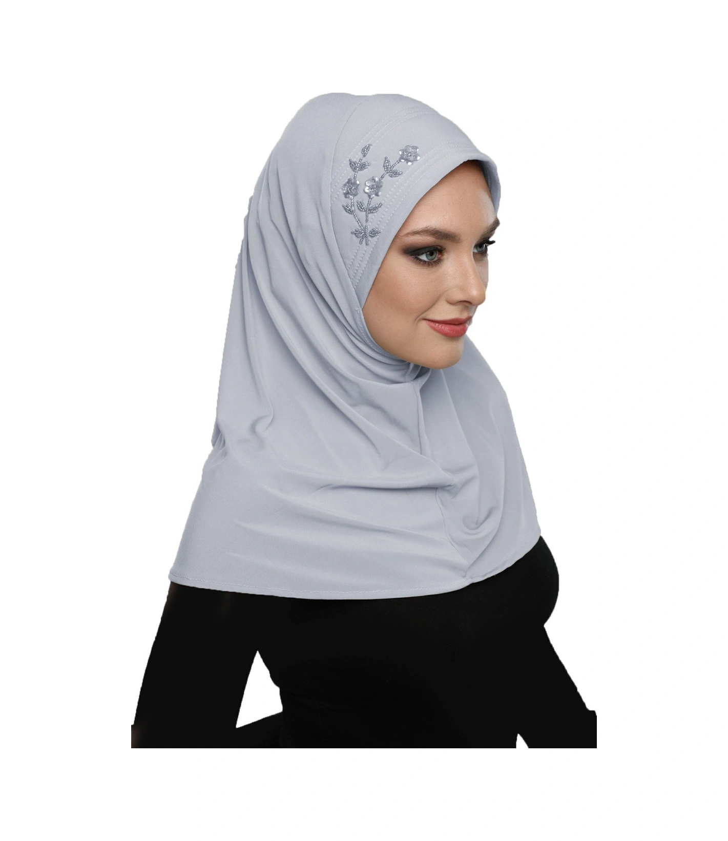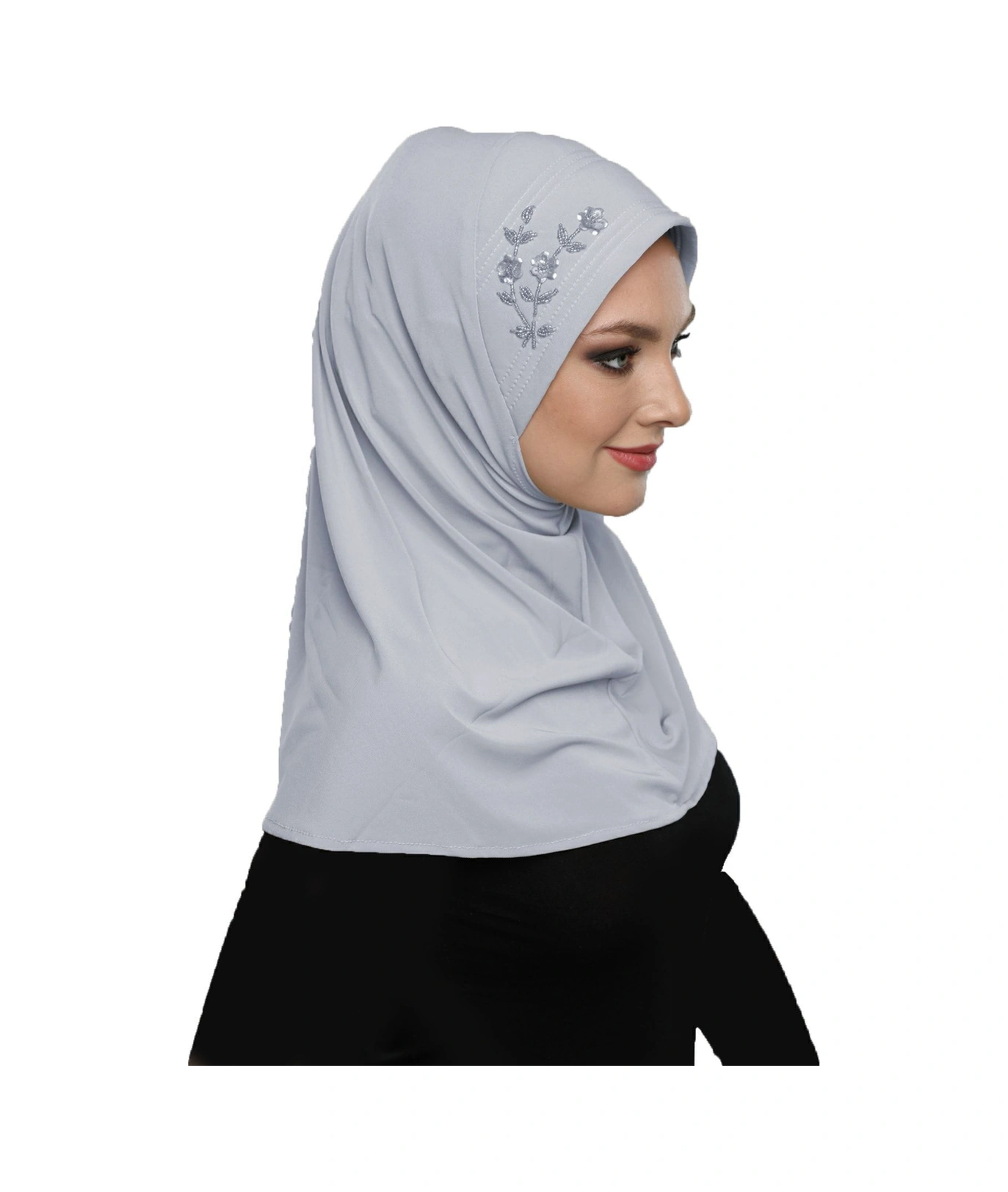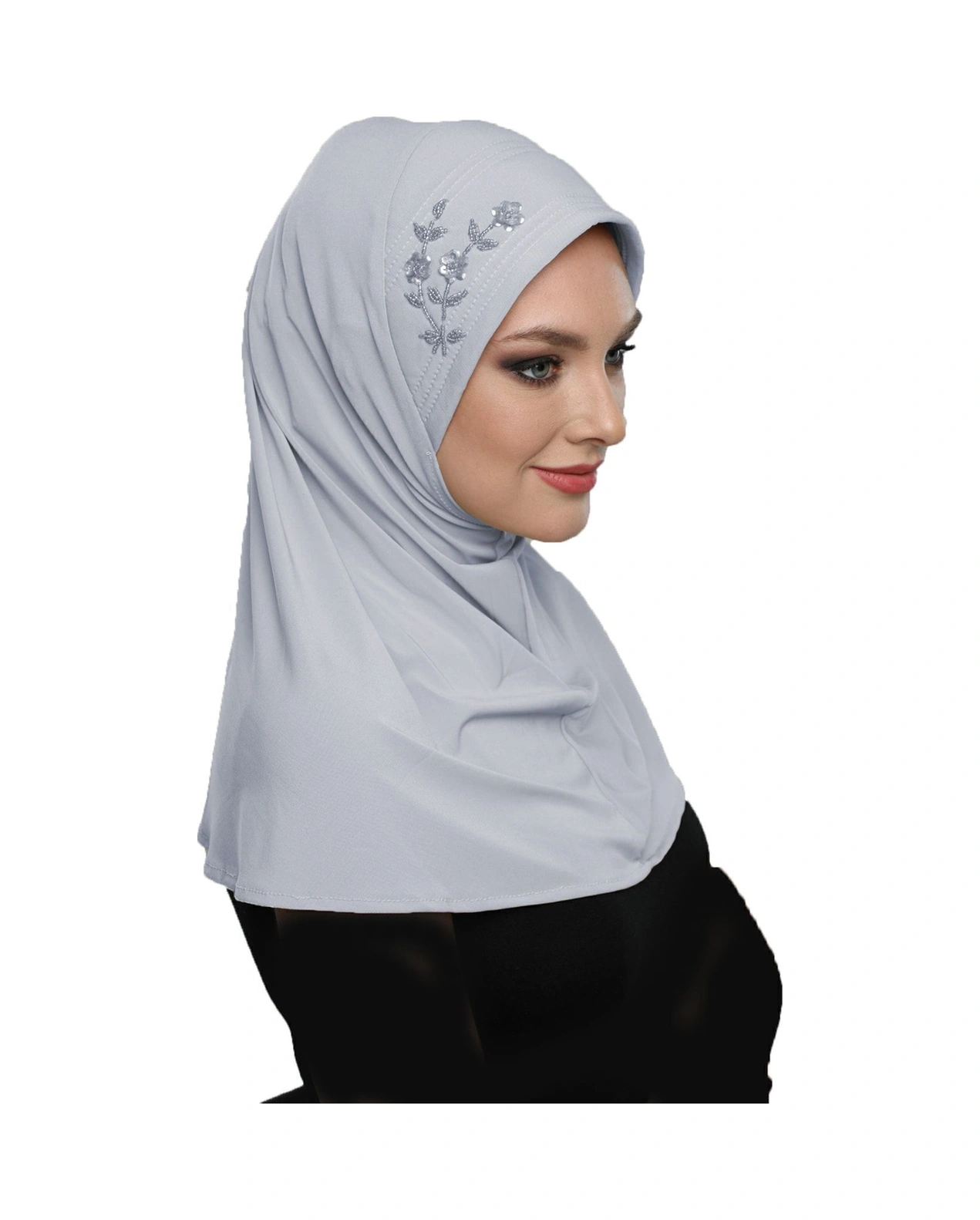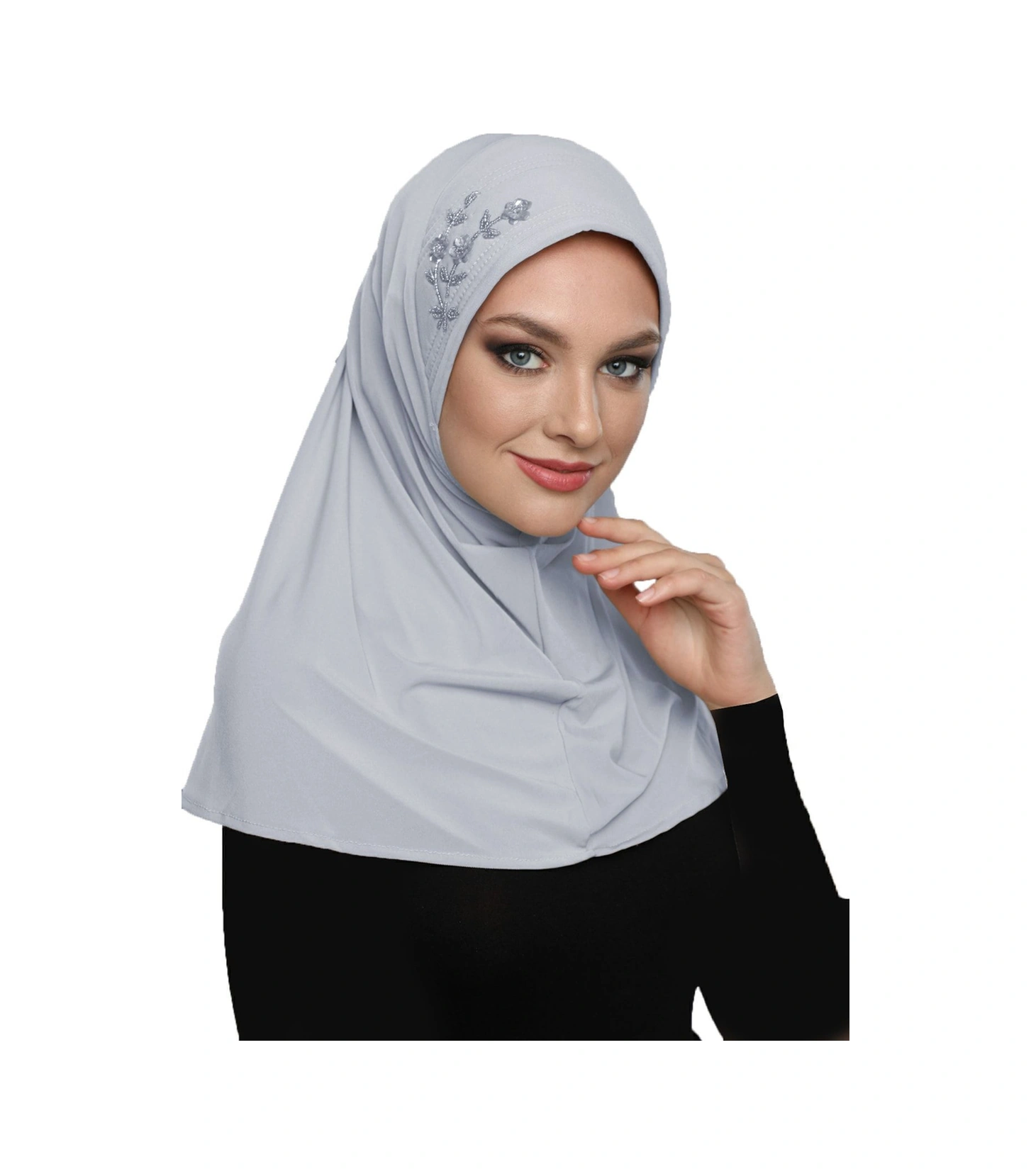 Takmatik Taşlı El Işi Boncuk Işlemeli Açık Gri Hazır Türban Tesettür Bone Namaz Örtüsü Açık Gri
