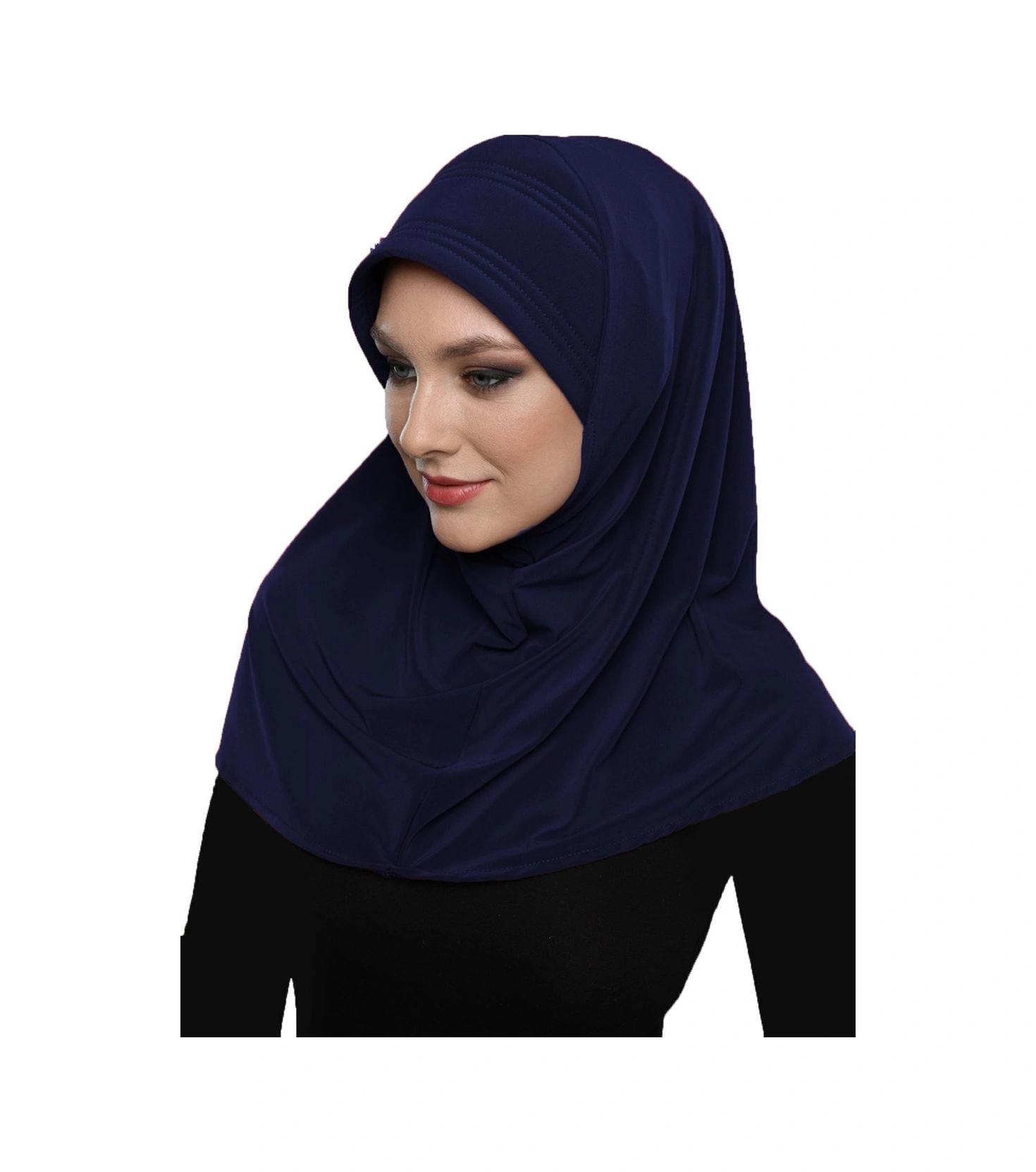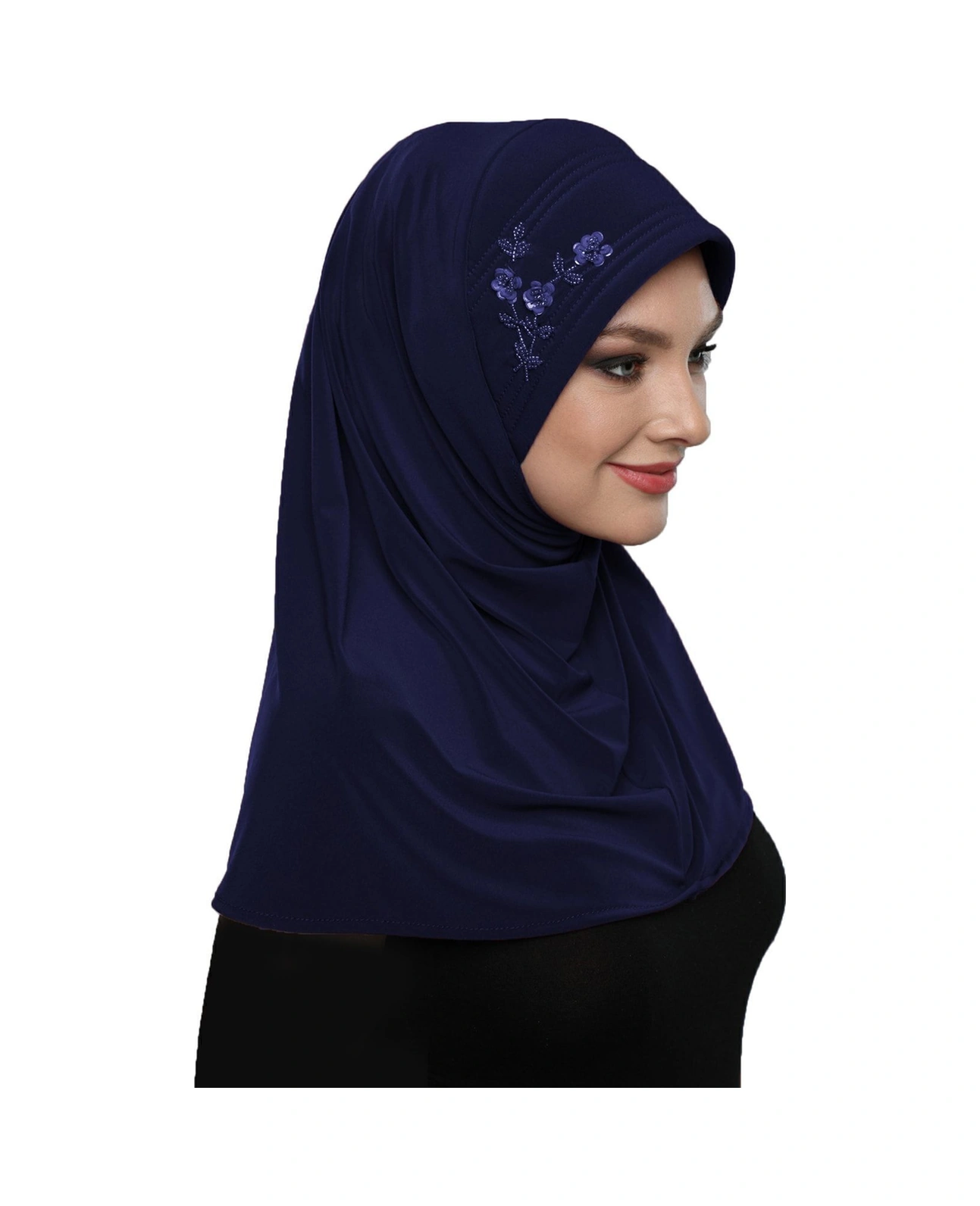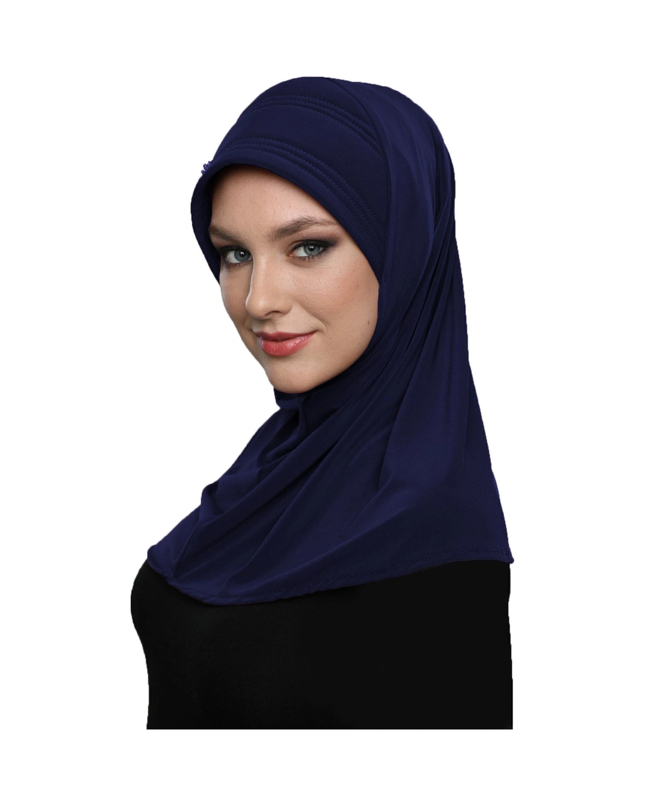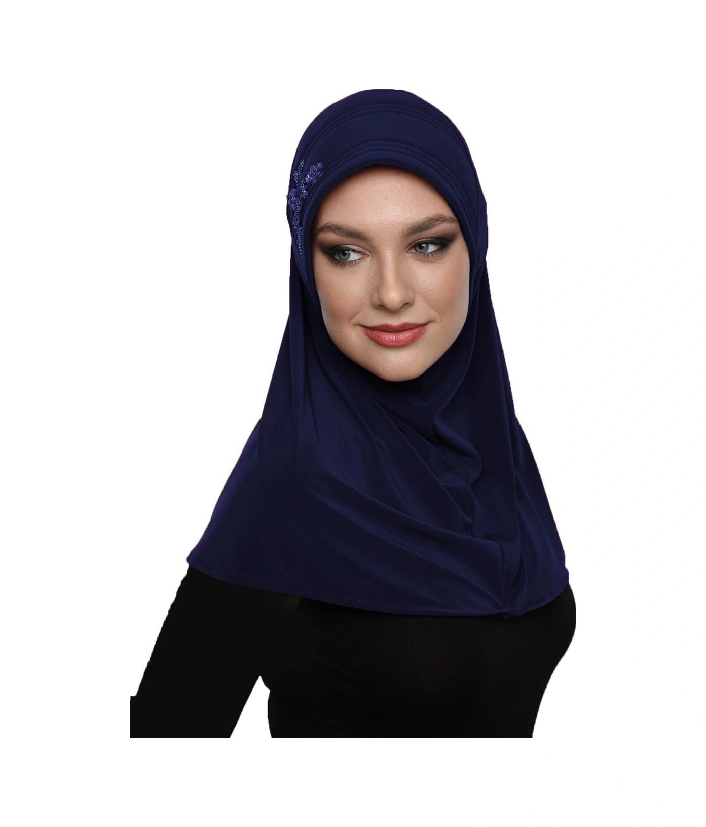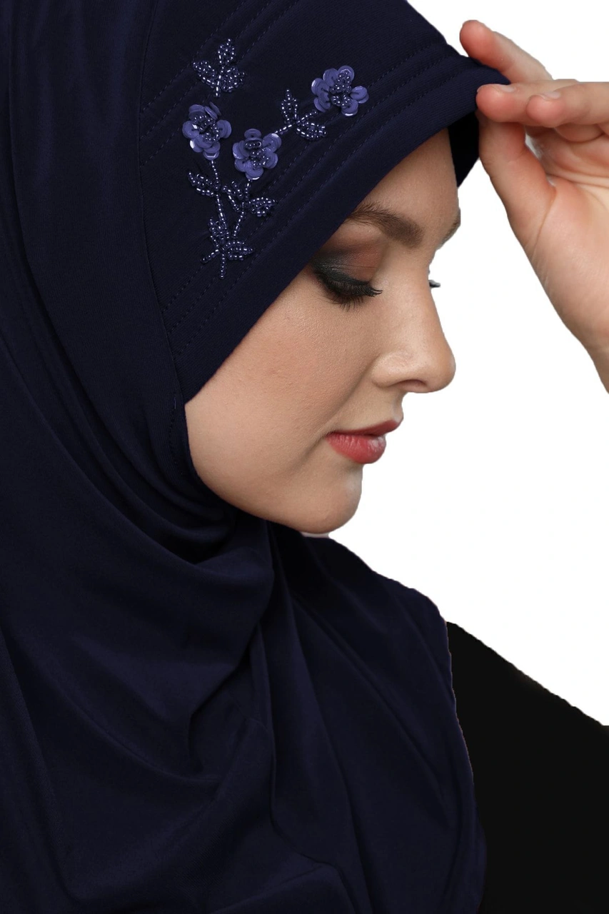 Takmatik Taşlı El Işi Boncuk Işlemeli Lacivert Hazır Türban Tesettür Bone Namaz Örtüsü Lacivert
