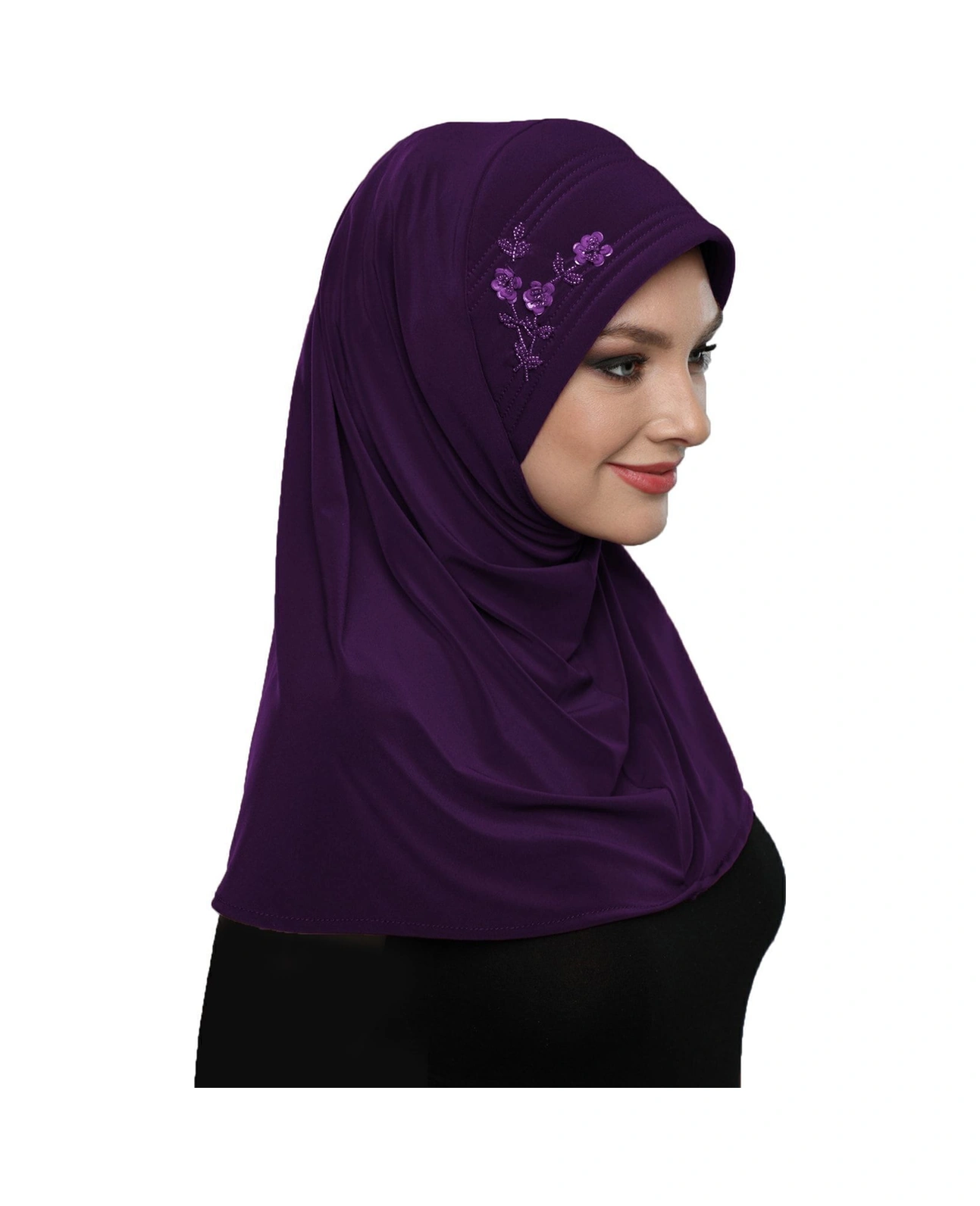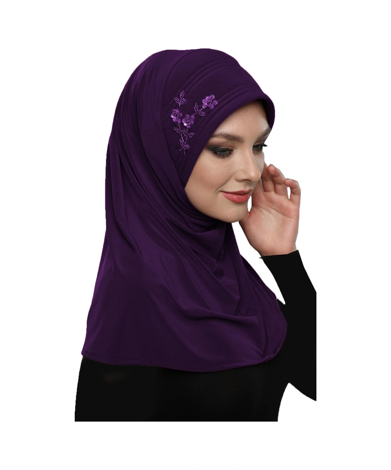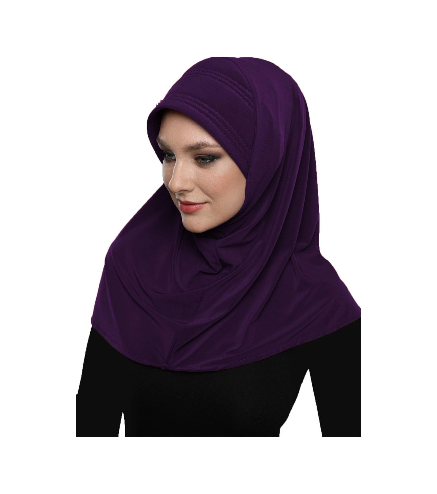 Takmatik Taşlı El Işi Boncuk Işlemeli Mor Hazır Türban Tesettür Bone Namaz Örtüsü Mor