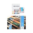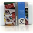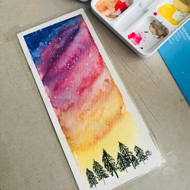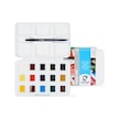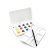 Bu setten önce büyük hevesle Winsor Newton'un Cotman kır setini almıştım, şık lacivert kutuda gelenini işi bilmediğim için. Sonra ben suluboyadan anlamıyorum diye bıraktım. Meğer Cotman'lar renk alması en zor boyaymış, fırçanın da canına okuyor. Bir gün siyah Van Gogh tablet deneyeyim dedim ve farkı gördüm. Bu setin tek zayıf rengi cerulean, ışığa dayanıklılığı çok az (google'da van gogh watercolor lightfastness test diye aratın). Soğuk mavi eksiğini yine Güven Sanat'tan White Nights bright blue tablet alarak giderdim, kargo da bedavaya geldi. Blok kağıt hediyesi zaten nefis.