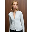TALUVIA Kadın Esnek Kumaşlı Vücuda Oturan Slim Fit Düğmeli Grimelanj Bluz