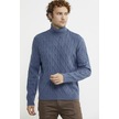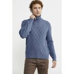 Tam Balıkçı Saç Örgü Triko Kazak - Indigo 001