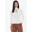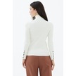 Tam Balıkçı Yaka Düğmeli Triko Kazak - Kemik