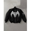 Tam Fermuarlı Uzun Kol Baskılı Bomber Ceket - Siyah Siyah