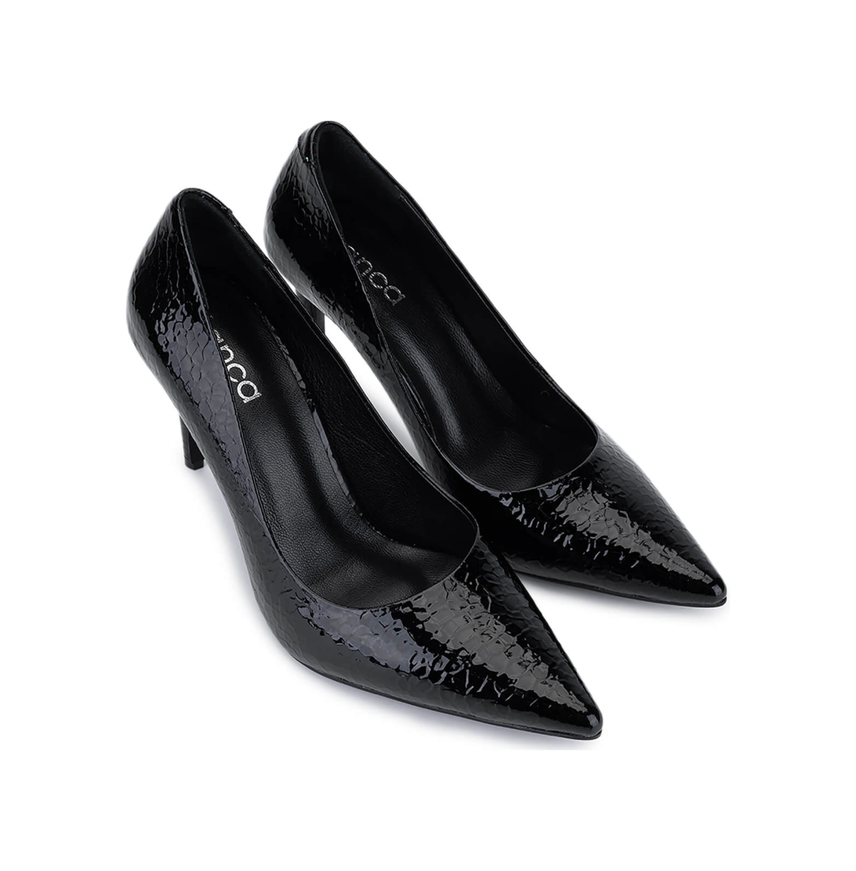 Tamer Tanca Kadın Suni Deri Siyah Kroko Topuklu Ayakkabı 1160 26598 Bn Ayk Sk25-26 Sıyah Kroko Siyah