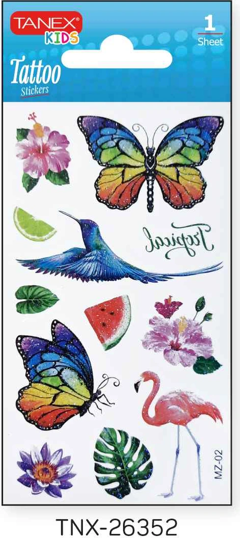 Tanex 7x12mm Kuş-kelebek Simli Tatoo Tnx-26352