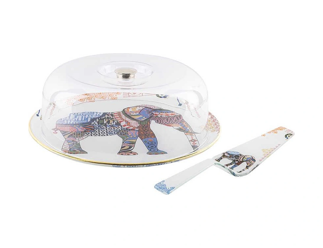 Tantitoni Cam Fil Desenli Yuvarlak 3 Parça Fanus Seti Beyaz