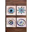 Taş Bardak Altlığı Nazar Boncuğu Baskılı 4'lü Set Çok Renkli