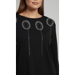 Taş Desenli Uzun Kollu Bambu Viskon Kumaş Bluz Siyah