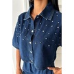 Taş Detaylı Gömlek Şort Denim Takım 10175 Deni M