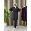 Taş Detaylı Kapüşonlu Fermuarlı İkili Tunik Takım Lacivert