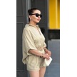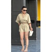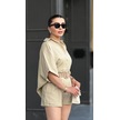 Taş Keten Kendinden Kemerli Gömlek-şort Takım Taş