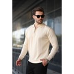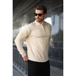Taş Rengi Yeşili Polo Yaka Fermuarlı Erkek Kazak E7427 Taş Rengi