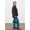 GRINNE Kadın Slim Gömlek Yaka Uzun Kollu İnce Uzun Fıstık Yeşili Gömlek