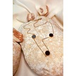Tasarım Model Siyah Taşlı Şık Gold Altın Renk Kadın Paslanmaz Çelik Kolye