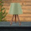 Tasarım Üç Ayaklı Ahşap Abajur Yeşil Kumaş Başlık Yatak Odası Salon Oturma Odası Yeşil