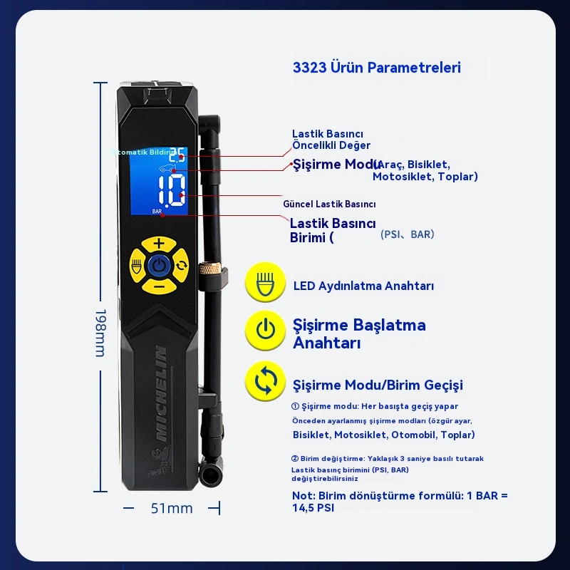 Taşınabilir Otomobil Şişirme Pompası, Karayolu Bisikleti Ve Motosiklet İçin Uygundur 1 Adet