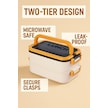 Taşınabilir Yemek Kabı 2 Katlı Lunch Box Diyet Beslenme Kutusu Saklama Kabı Çatal Kaşıklı Sefer Tası Beyaz - Sarı