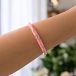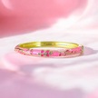 Taşlı Çiçek Motifli Pembe Mineli Çelik Bilezik Gold