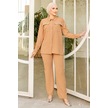 Taşlı Keten Tunik Pantolon İkili Takım 834 - Vizon Vizon