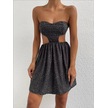 Otantik Desenli Bağcıklı U Yaka Büyük Beden Elbise Desenli