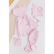 Tavşan Figürlü Pamuklu 5 Parça Kız Bebek Hastane Çıkışı Bebek Takımı Pembe
