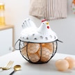 Tavuk Figürlü Yumurta Meyve Tutucu Mutfak Organizer Sepet Beyaz - Siyah
