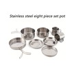 Tcherchi Açık Hava Saksıları Yürüyüş ve Kamp Malzemeleri, Portatif Kombinasyon Seti 8 Parça Gri