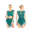 Teal Kadın Lirik Modern Bale Dans Elbise Asimetrik Şeffaf Örgü Tutu Etekli Leotard