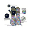Techbloom Diken Geçirmez Eldiven Nefes Alabilir Polyester Green Floral Desenli Unisex Bahçe Eldiveni