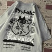 Teekossc 2024 Yaz Kedi Baskılı Harajuku Kawaii Erkek Kadın T-shirt Y2k Streetwearbej Bej