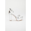 Tek Bant Rugan Gümüş Kadın Platform Topuklu Abiye Ayakkabı 2385 Gümüş